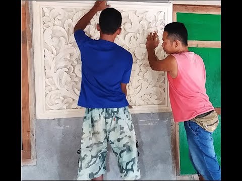 Cara memasang relief batu paras jogja batu putih yang cepat rapi bagus dan kuat Durasi : 11:14